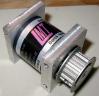 My first attempt at attaching the pulley to the drum involve milling the hub and flanges off a large 30 tooth timing pulley. The bearing for the drum was captured between the two pieces. |