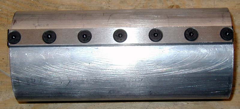 I next milled a 1/2" groove into the drum to help hold onto the teeth. I put plenty of bolt holes in, wanting to hold the teeth as securely as possible. The teeth are made out of the same material as we use in Helios, 1/2" precision ground air hardening steel. The retaining bolts are counter sunk in order to avoid being knocked off. |